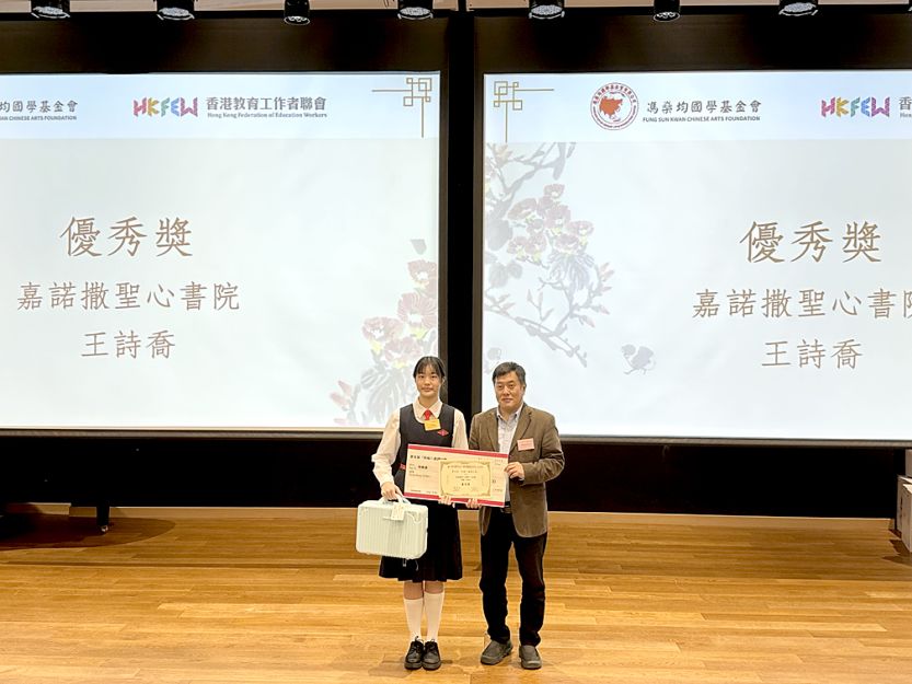 透過即場編寫報告及評論、以及三分鐘的即時演講,本校王詩喬同學(中三己)被評審選為六名中學組優秀獎得主之一。