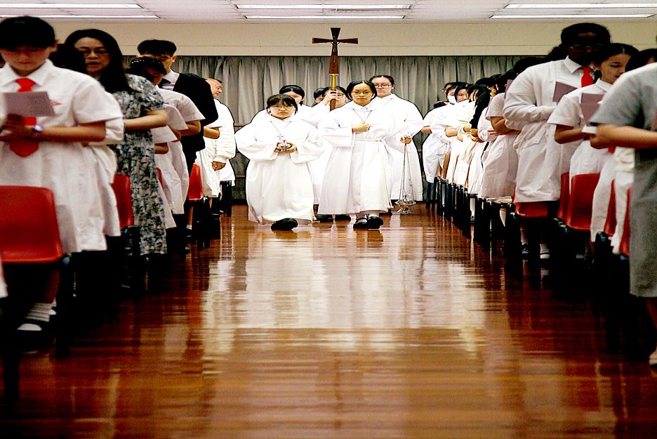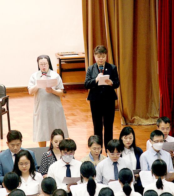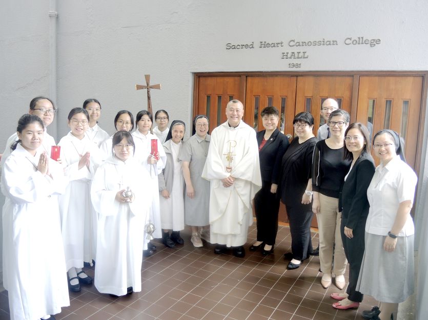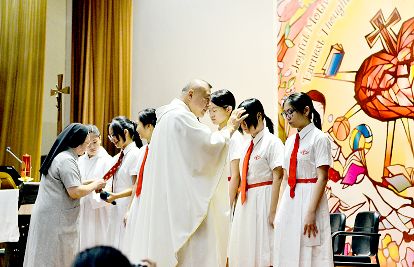 The mass also featured the installation of the new Executive Committee for the Catholic Society, who pledged to carry out their duties with love and humility. Following this, under the leadership of our Principal, Miss Renie Sinn, the entire assembly of teachers and students affirmed their shared commitment to follow the footsteps of our Foundress, St. Magdalene of Canossa, and to strive towards the ideals of the school theme.