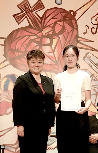 In her maiden speech to the school, the Head Girl Vivian Chan drew inspiration from the school song, emphasising that its lyrics represent more than just words – they encapsulate the very essence of the Sacred Heart spirit. Within the song, she reflected on the profound history, which tells of the six Canossian sisters who founded the first Catholic Canossian girls’ school 165 years ago. Encouraging every student to uphold Sacred Heart qualities, she urged them to adopt a great mindset: to embrace adversity, serve with humility, and become global citizens eager to discover the wider world. She concluded by affirming that it is these very values that make Sacred Heartists strong and united.
